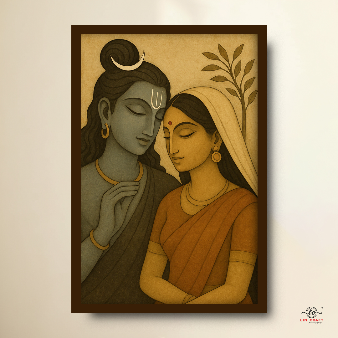 Bring home the eternal bond of love with this beautiful shiva parvati painting. Perfect for adding a divine and artistic touch to your living room, bedroom, or pooja space.